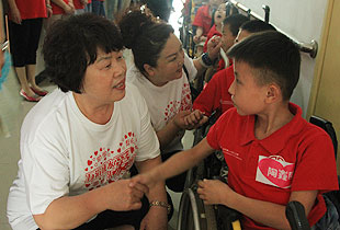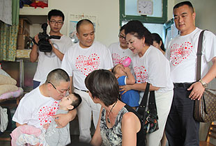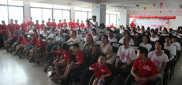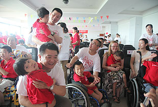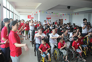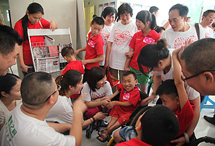 “福利院收養(yǎng)的孩子95%以上都是殘障兒童,其中腦癱又占絕大多數(shù),還有一些唇腭裂、肢體殘疾的患兒”,在衡陽(yáng)服務(wù)了八年的英國(guó)籍、ICC衡陽(yáng)春天福利院負(fù)責(zé)人愛(ài)麗向志愿者們介紹。在這里,還有許許多多的外教,他們遠(yuǎn)離祖國(guó)無(wú)償義務(wù)服務(wù)在這里,這種無(wú)私的精神讓人欽佩和尊敬。在這里,也還有許許多多的“特護(hù)媽媽”,他們每天都在照顧著孩子,用自己的滿腔熱情和愛(ài)心,無(wú)怨無(wú)悔當(dāng)好孤殘兒童的家人,讓每位孤殘兒童都享受到家庭的溫馨、濃濃的親情;他們盡職盡責(zé)當(dāng)好老師,為每位孤殘兒童上好人生的第一課,用真情真愛(ài)為孤殘兒童撐起了一片藍(lán)天。
