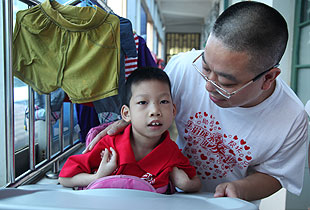 隆隆,患有脊柱裂,身體不是很好,抵抗能力差,很容易感冒,2006 年10 月7 日轉(zhuǎn)入春天服務(wù)中心。今年9月份以前他每天都在院內(nèi)的培智一班上課,他接受能力很強(qiáng),反應(yīng)也很靈敏,學(xué)習(xí)成績(jī)很棒,一直是班上的佼佼者,現(xiàn)在已經(jīng)被飛雁小學(xué)錄取。