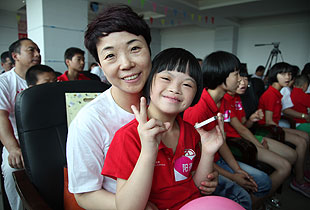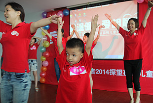 走進(jìn)兒童活動(dòng)室,一幅幅生動(dòng)的場(chǎng)面映入眼簾:在老師的帶領(lǐng)下有的孩子在唱兒歌、有的在做游戲、有的在做康復(fù)訓(xùn)練,一張張?zhí)煺鏌o(wú)邪的面容深深地觸動(dòng)著志愿者們的心靈。生活在福利院里的孤殘兒童,他們是不幸的,但又是幸福的,因?yàn)椤拔矣幸粋€(gè)幸福的大家庭!”