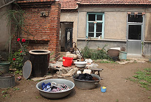 破舊的大門敞開著,一位年事已高的婆婆正彎腰洗衣,院子里除了幾朵開得正艷的花,毫無生機。見到綠之韻愛心志愿者一行的到來,老婆婆艱難地起身,滿臉讓人心疼的笑意。資料顯示我們此行慰問的對象叫王瑞芬,今年67歲。只是沒想到,眼前這位婆婆竟然就是我們尋找的主角,步履蹣跚,蒼老弱態(tài),分明超出了實際年齡。