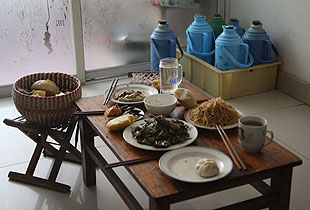 上百種藥瓶藥盒成為這個家庭最刺眼的標簽。貧困母親郭明星,46歲,是全家人的支柱。來到這個家時,他們正在準備吃午飯。幾個包子、兩碟咸菜、一盤土豆絲,竟就是一家四口人的中餐。簡單得沒法用詞語形容。