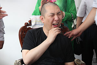 在與我們交流的過程中,付桂芬平靜地講述著自己的遭遇,而她的丈夫,露出頭部猙獰的疤痕,說起妻子的付出,老淚縱橫。旁邊的愛心志愿者,也早已泣不成聲。