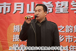 “讓貧困孩子上學,讓留守孩子有愛,讓農(nóng)民工子女找到家的感覺,讓愛在這里延續(xù),讓希望在這里升騰”,這是月山鎮(zhèn)希望學校校長李勇翔的辦學目標。在捐贈儀式現(xiàn)場,李校長的講話稿里提到,“近幾年隨著月山鎮(zhèn)外出打工的農(nóng)民日益增多,學生構(gòu)成也發(fā)生了巨大變化。學校為了幫助這些常年在外打工的家長解除后顧之憂,積極接收其子女入學。這些留守的孩子們是如此可愛,看著他們懂事樂觀的樣子,又很心疼。我感謝綠之韻的每一位愛心經(jīng)銷商,幫助學校建設,關愛孩子成長。”