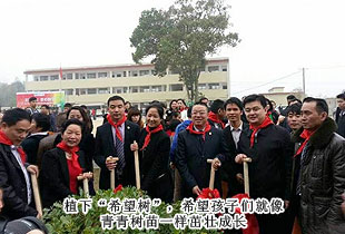 揭牌儀式結(jié)束后,胡國安董事長與綠之韻愛心經(jīng)銷商在李勇翔校長的帶領下一起參觀了月山鎮(zhèn)學校的教學環(huán)境,并植下了八棵“希望樹”,希望孩子們就像青青樹苗一樣,充滿生機與朝氣,努力學習,成為國家的棟梁,將來更好地建設家鄉(xiāng)。