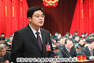 12日上午8時30分,大會在莊嚴(yán)的國歌聲中開幕。大會由瀏陽市人大常委會副主任孫建科主持。會議應(yīng)到代表381名,因事因病請假6名,實(shí)到375名,符合法定人數(shù)。瀏陽市人民政府市長余勛偉作政府工作報(bào)告。報(bào)告全面回顧了2013年工作,提出了2014年政府工作的總體目標(biāo)和主要措施。過去一年,瀏陽市緊緊圍繞“挺進(jìn)三十強(qiáng)、再創(chuàng)新輝煌”目標(biāo),團(tuán)結(jié)拼搏,克難奮進(jìn),扎實(shí)推進(jìn)各項(xiàng)工作,較好地完成了市十六屆人大二次會議確定的各項(xiàng)目標(biāo)任務(wù)。全年實(shí)現(xiàn)地區(qū)生產(chǎn)總值940億元,增長14.5%;完成財(cái)政總收入75.9億元,增長37.3%;完成固定資產(chǎn)投資568億元,增長30.5%;實(shí)現(xiàn)社會消費(fèi)品零售總額179億元,增長13%;城鄉(xiāng)居民人均可支配收入達(dá)24120元。地區(qū)生產(chǎn)總值、工業(yè)總產(chǎn)值、財(cái)政收入等主要經(jīng)濟(jì)指標(biāo)增速居長沙九區(qū)縣(市)第1位,城市創(chuàng)新能力居全國第48位、全省第1位,縣域經(jīng)濟(jì)與縣域基本競爭力挺進(jìn)全國前50強(qiáng),由第60位躍升至第47位,進(jìn)位速度居全國百強(qiáng)之首。