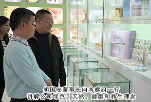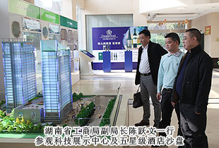 考察過程中,湖南省工商局副局長陳躍文、湖南省網(wǎng)商協(xié)會秘書長一行首先參觀了綠之韻集團總部、產(chǎn)品展示廳和科技展示中心及五星級酒店沙盤。胡國安董事長就公司產(chǎn)品、產(chǎn)學研合作、公益慈善和未來規(guī)劃等相關(guān)情況進行了簡短介紹,各位領(lǐng)導邊走、邊聽、邊仔細詢問,頻頻點頭以示高度肯定和贊許。