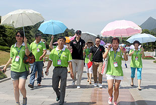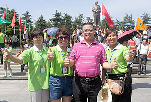 上午10時,綠之韻營銷精英2013韶山紅色之旅一行抵達了魂牽夢繞的美麗韶山。第一站,來到毛澤東銅像廣場,瞻仰偉大的毛主席。毛主席銅像立于高高的紅色花崗巖石基座上,背靠韶峰,主席身軀偉岸,手握書卷,雙眼炯炯有神,面帶微笑地注視著廣場,注視著遠方,仿佛在歡迎遠來的客人和世界各地的朋友,主席又似乎停步思考著天下的大事,一派學者風范。胡國安董事長不畏炎熱,百忙之中驅車來到偉人故里,來到綠之韻伙伴們身邊,追憶往昔,敘說衷腸,暢享夢想,伙伴們興奮不已、激情四溢,整齊有序排好隊列和胡國安董事長一一合影留念。接著,在胡國安董事長的引領下,大家懷著無比崇敬的心情向毛主席的銅像獻花、敬禮,向毛主席三鞠躬,像全國各地奔向韶山?jīng)_的人們一樣,通過這種最傳統(tǒng)的方式來祝福、紀念、緬懷……站在巨大的塑像腳下,一種自豪而激動地情懷油然而生,綠之韻們伙伴們不禁讓我想起毛主席那豪邁飄逸的詩篇《沁園春?雪》:“數(shù)風流人物,還看今朝”。